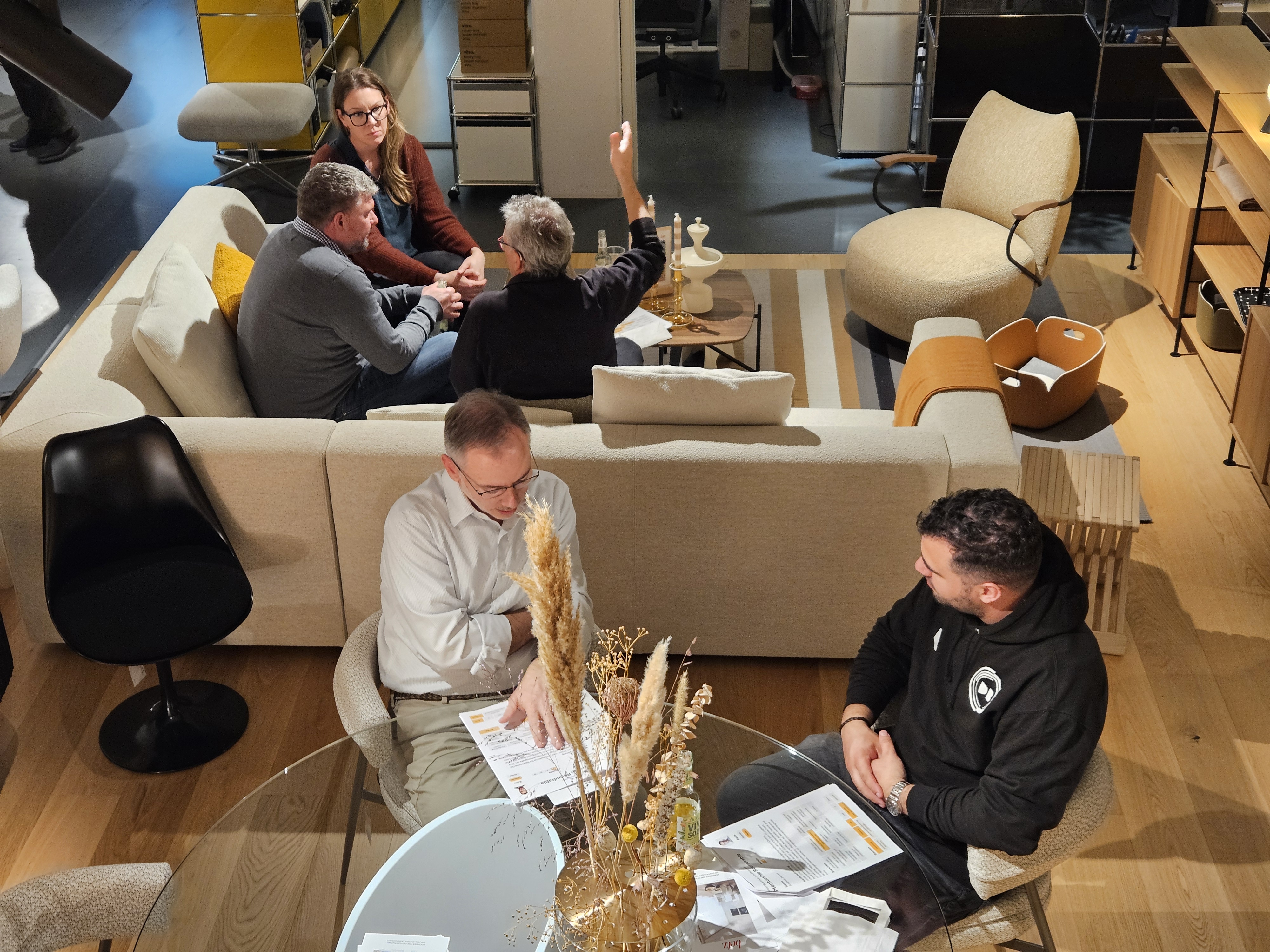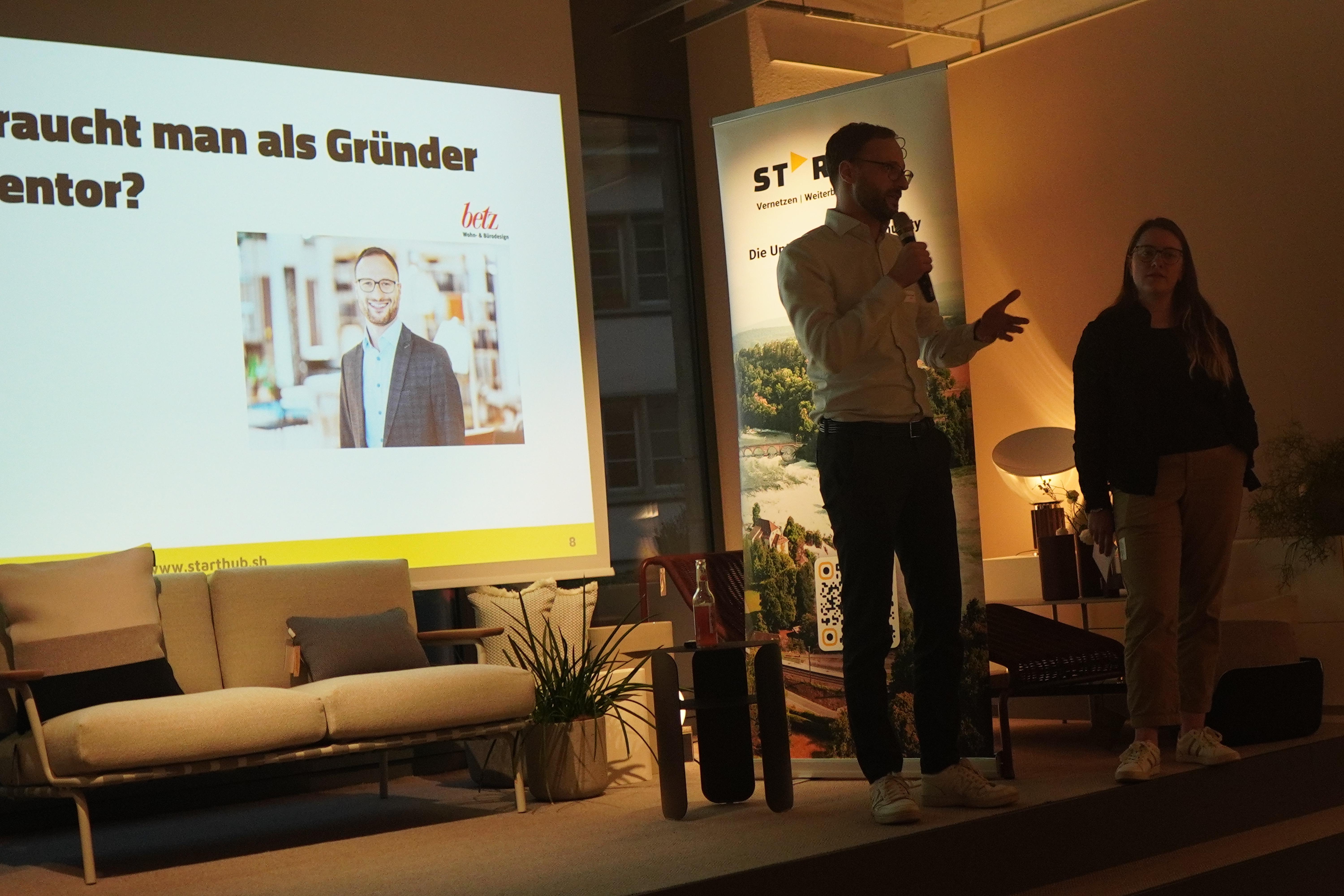 ➡️ Begrüssung durch Nico Birrer, Noël Stöckli und Sina Rohner (StartHub) sowie Andy Bleisch (Betz Wohn- & Bürodesign)